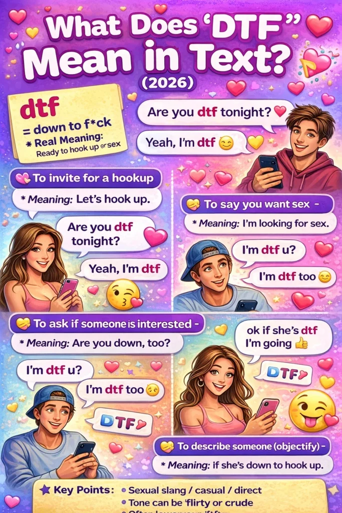 “DTF” is a widely used slang term that means someone is open to casual sexual activity. While it’s common in texting and online culture, it’s also quite direct and can be sensitive depending on the situation.